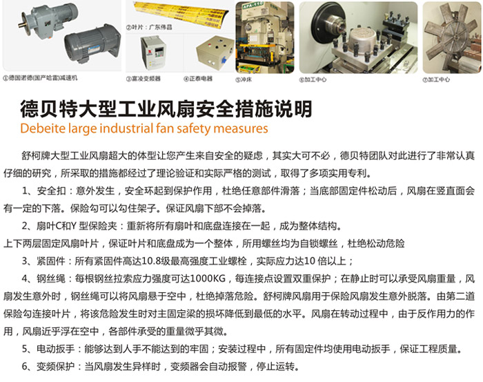 玉環(huán)德貝特大型工業(yè)吊扇已通過ISO/TS16949:2002質量管理體系認證(不含產(chǎn)品設計),產(chǎn)品質量已達到國際先進水平。